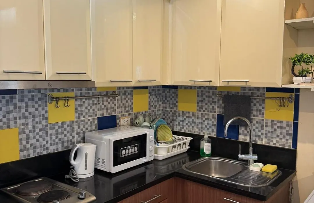 このアパートには自炊を希望される方のために台所が備わっています。 Fort Bonifacio Gate 1バス停は、この宿泊すぐ近くです。